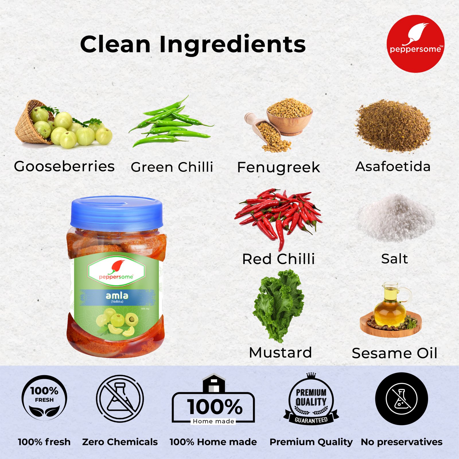 Amla is also known as Gooseberry in English. Basically, the amla contains an extremely sour taste. So the other ingredient we add to the pickle will complement its taste. And this will give you a mesmerizing taste in each and every bite. Generally, amla is a seasonal fruit we can find only in autumn. Hence, four different types of amla were there. Banarasi, Chakaiya, Francis, Wild Himalayan Amla, are the different types.